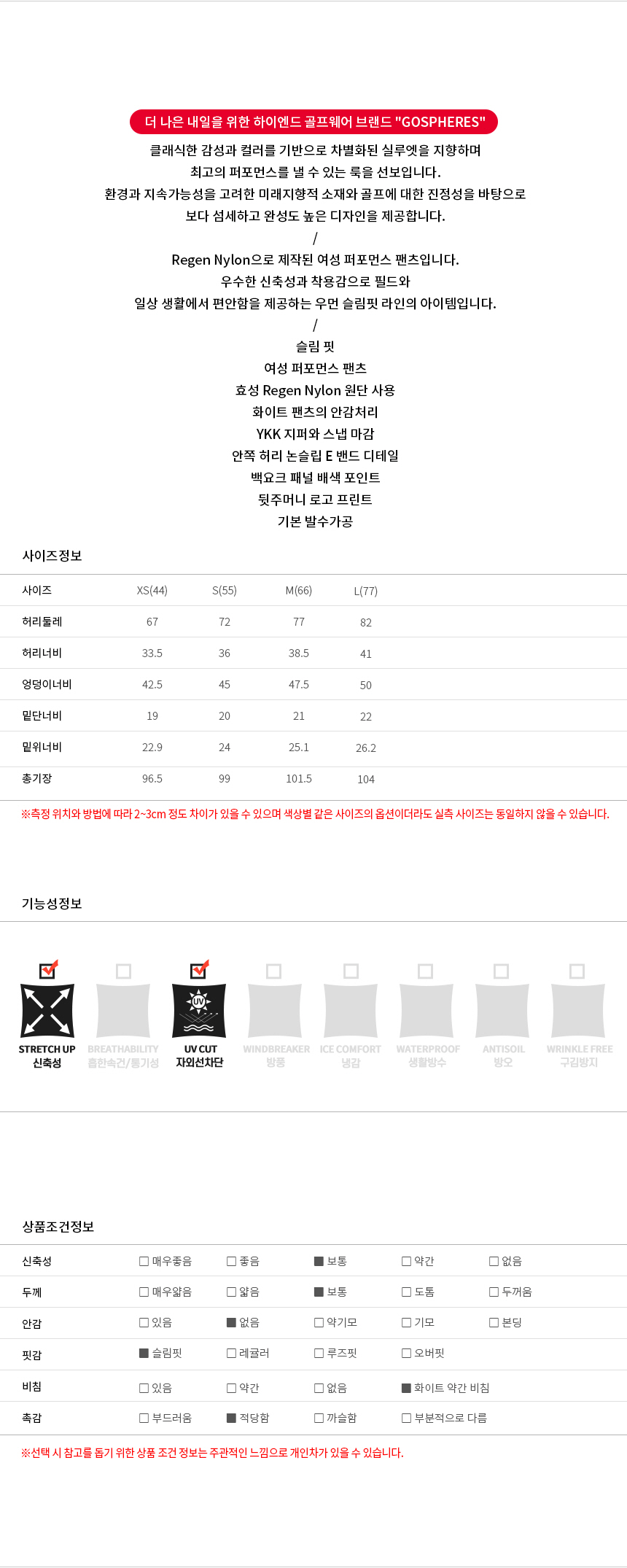 | Ä¡¼ö | XS(44),S(55),M(66),L(77) |