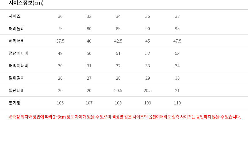 | Ä¡¼ö | 30,32,34,36,38 |